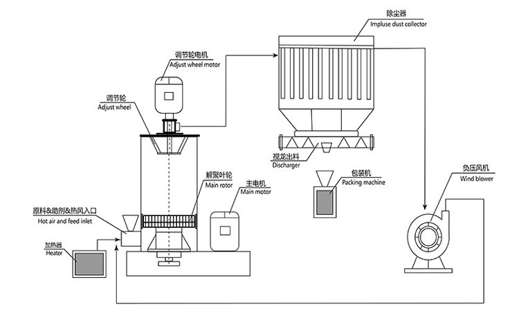 3.腔體高大利于風(fēng)流旋轉,讓粉體在較大的空間內互相碰撞而得到充分摩擦和活化,提高效率。